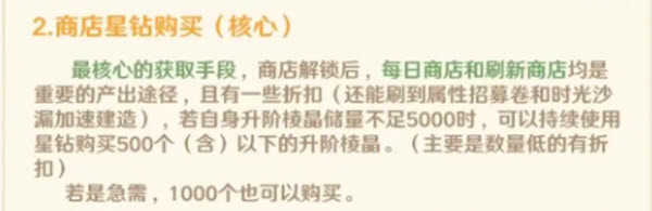 商店購買方面,每日商店與刷新商店是核心獲取渠道之一,消耗星鉆能夠購買到大量升階棱晶,部分商品還設(shè)有折扣福利。此外,商店中或許會(huì)刷新出屬性招募券、時(shí)光沙漏這類實(shí)用道具。要是自身儲(chǔ)備低于5000,建議保持持續(xù)補(bǔ)充。