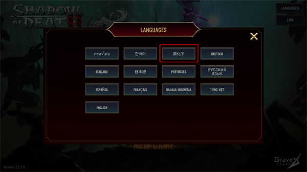 在本站完成安裝后,點擊打開就能進入游戲;玩家若想切換中文,只需點擊右上角的語言設(shè)置,選擇“簡化字”選項即可。