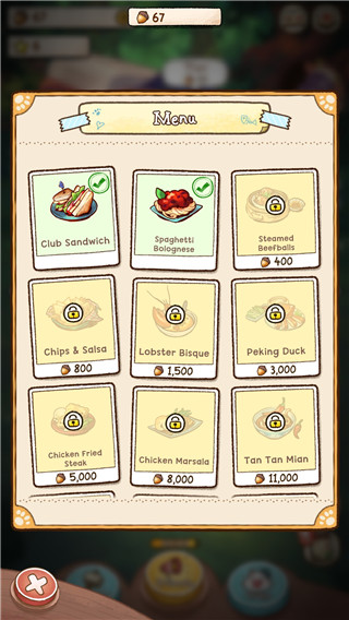 在游戲里研發各類餐食并在店鋪中進行售賣,同時對食物進行升級以提升它們的屬性。
