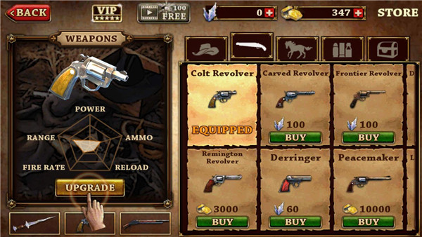 游戲里存在不少道具,你得戰(zhàn)勝那些挑戰(zhàn)牛仔的對(duì)手,這樣才能獲取金幣。