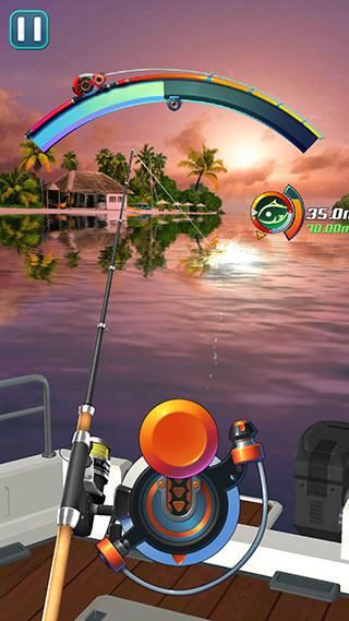 在本站完成安裝后點擊打開進入游戲,接著向下拖動界面中間的紅色按鈕,即可向湖中拋竿釣魚。