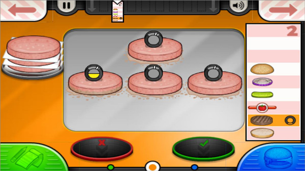 到燒烤臺煎肉餅時,肉的熟度要依據指針的提示來判斷,必須達到要求才行。