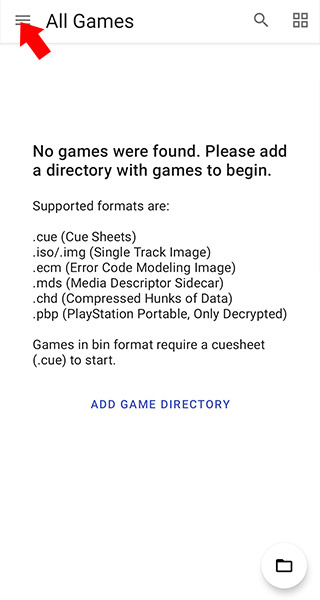 在本站完成安裝后點擊打開進入,將手柄與手機設備連接好,然后點擊左上方的三條杠按鈕。
