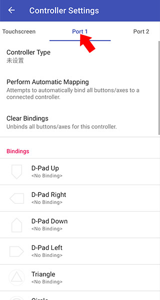 接下來,在Controller Settings上方的導航欄里選擇Port 1選項,然后在彈出的界面中配置手柄的按鍵映射,完成這些設置后,啟動游戲就能開始游玩了。