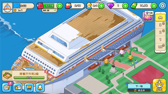持續贏取更多金幣,用于修復游輪的其他區域,以此吸引更多顧客,進而打造出最棒的豪華游輪。