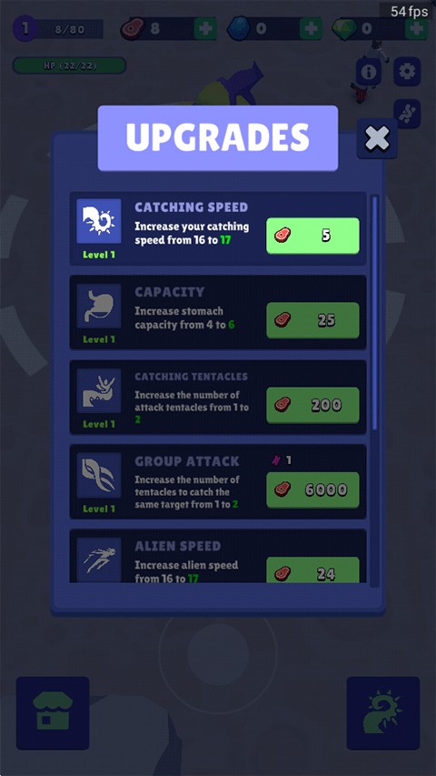 通過消耗獲取的食物可以增強自己的各項能力