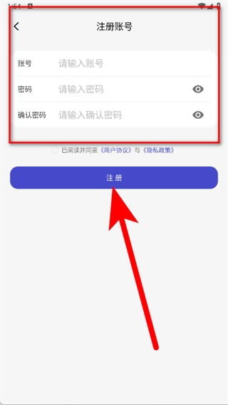 填寫賬號、密碼等信息后點擊注冊,完成注冊。