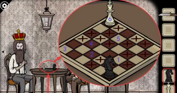 點擊棋盤即可開啟對局模式,需遵循國際象棋中“馬走日”的規則,在避開標有X的障礙的前提下,按照圖示的順序操控“馬”將“王”吃掉。