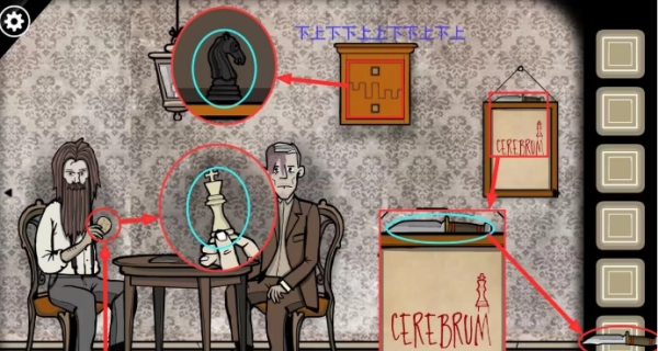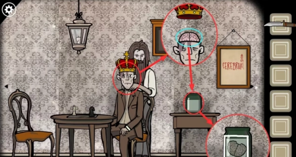 點擊掛在墻上的相框,上面刻著“CEREBRUM”(大腦)的字樣,然后取下相框旁邊的雕刻刀。