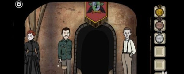 首先,進入場景后要從三位角色身上取下他們攜帶的懷表,這是開啟鐘樓機關的關鍵道具。