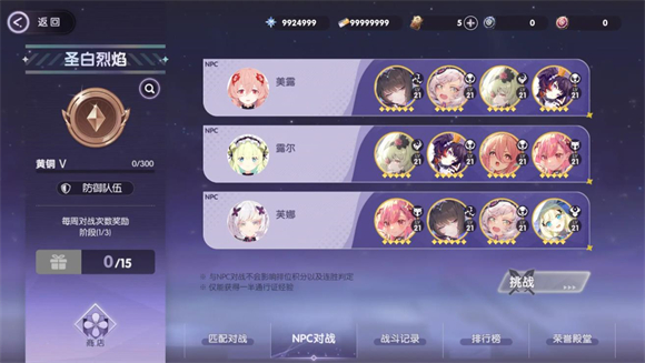 NPC對戰屬于PVE模式,若玩家不想參與玩家間的戰斗,可選擇與系統預設的NPC隊伍對戰。該模式會為玩家匹配等級與自身賬號等級相當的NPC隊伍,對戰后同樣能獲取兌換獎勵所需的代幣,但無論勝負都無法獲得競技積分。
