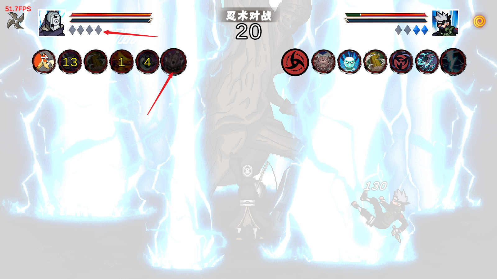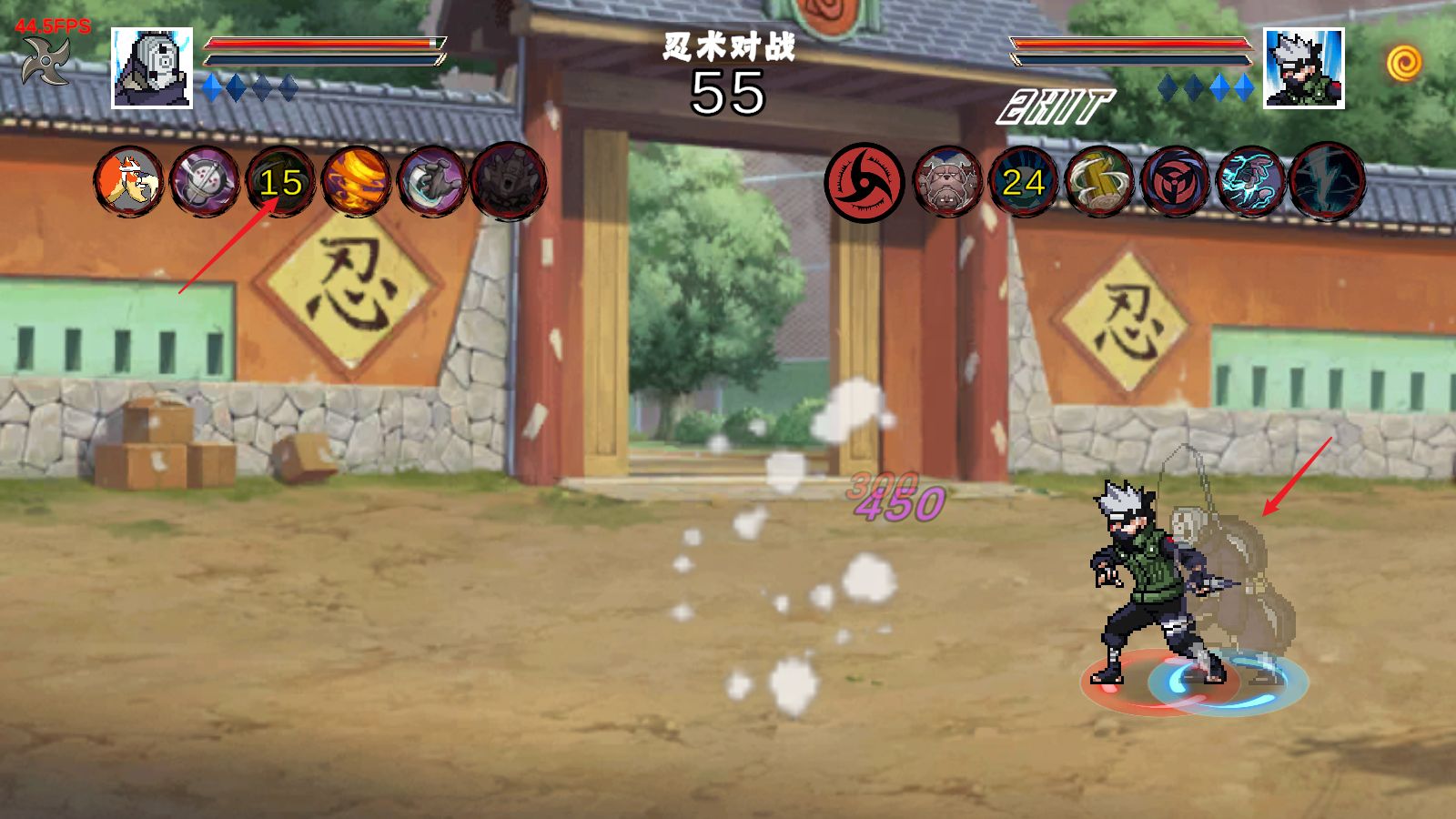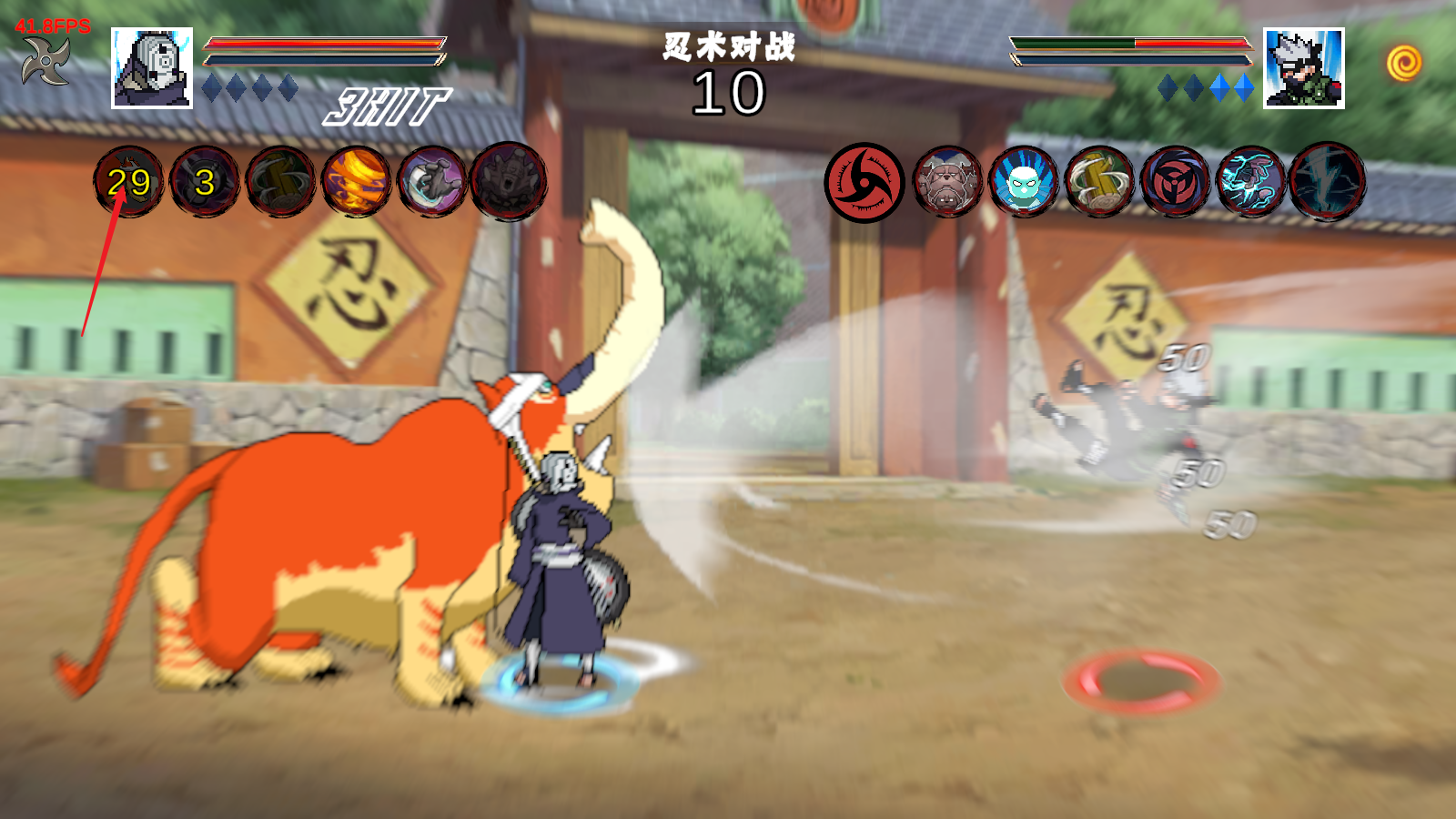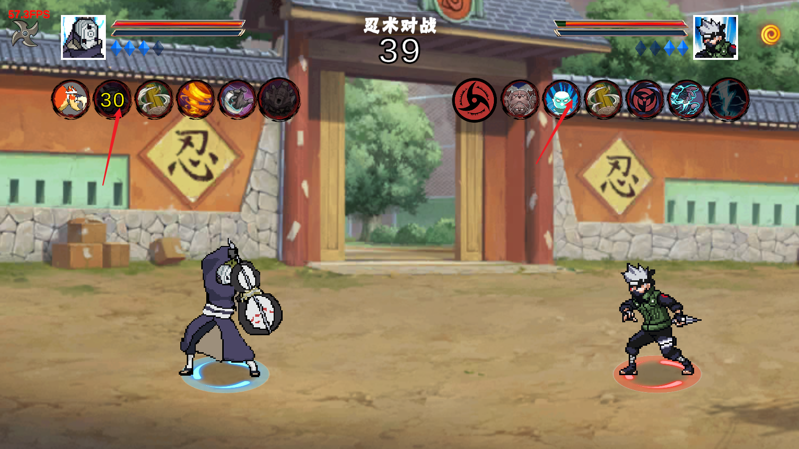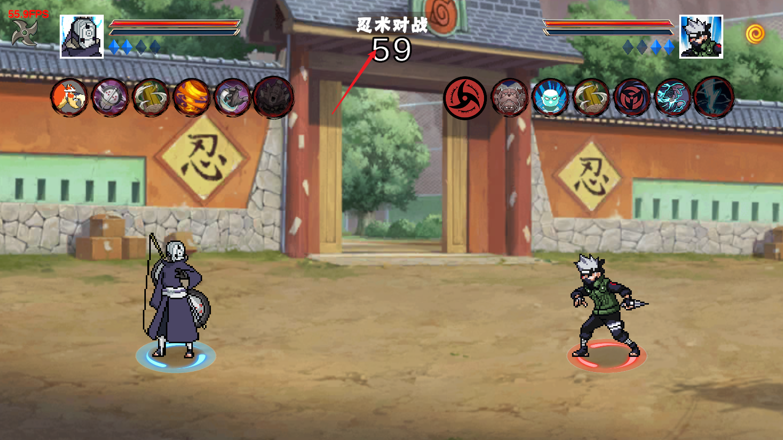 戰(zhàn)斗打響后,屏幕上方的計(jì)時(shí)會(huì)立刻進(jìn)入倒計(jì)時(shí)狀態(tài),一旦時(shí)間耗盡,或是其中一方忍者的生命值降到零,這場(chǎng)游戲便宣告結(jié)束。