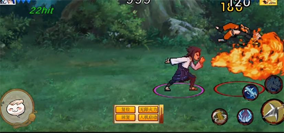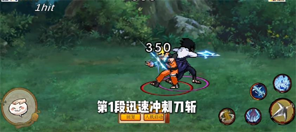 疾風(fēng)傳佐助是采用新引擎打造的首個(gè)忍者角色,其機(jī)制相對(duì)簡(jiǎn)潔。普攻共有五段,第一段為拳擊,第二段是頂擊并抽刀后撤,第三段是位移加斬?fù)簦谒亩问秋w踢,第五段則釋放火遁。