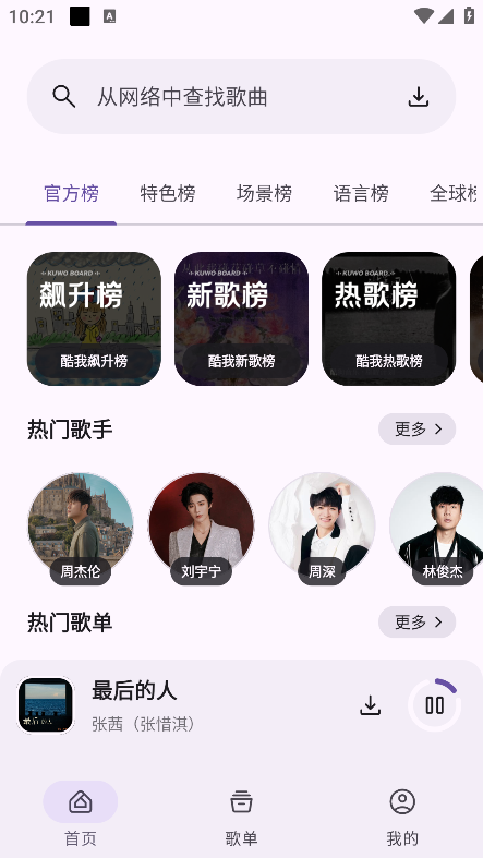 打開軟件在首頁能夠看到各種音樂和榜單