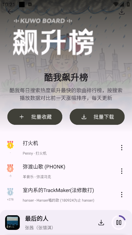 點擊感興趣的榜單后會獲得大量的音樂