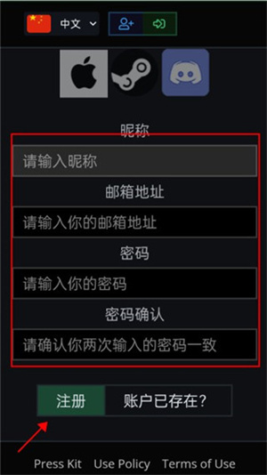 在游戲輸入自己的郵箱,并填寫密碼進行創建賬號
