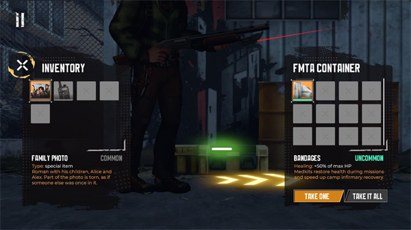 當(dāng)遇到可互動的物品時,能夠開展搜索操作,并且可以選擇帶走其中的部分物品或者全部物品。