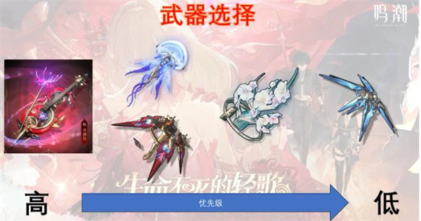 在武器的選擇上,弗洛洛的專武優(yōu)先級(jí)最高,其次是海的呢喃(坎特蕾拉專武)與掣傀之手(吟霖專武),這兩者的強(qiáng)度較為接近;再往后是瓊枝冰綃(折枝專武),它的優(yōu)先級(jí)高于常駐五星武器。而四星武器里,大月卡武器清音是優(yōu)先之選,除此之外,核熔星盤或今州守望也可以作為備選。