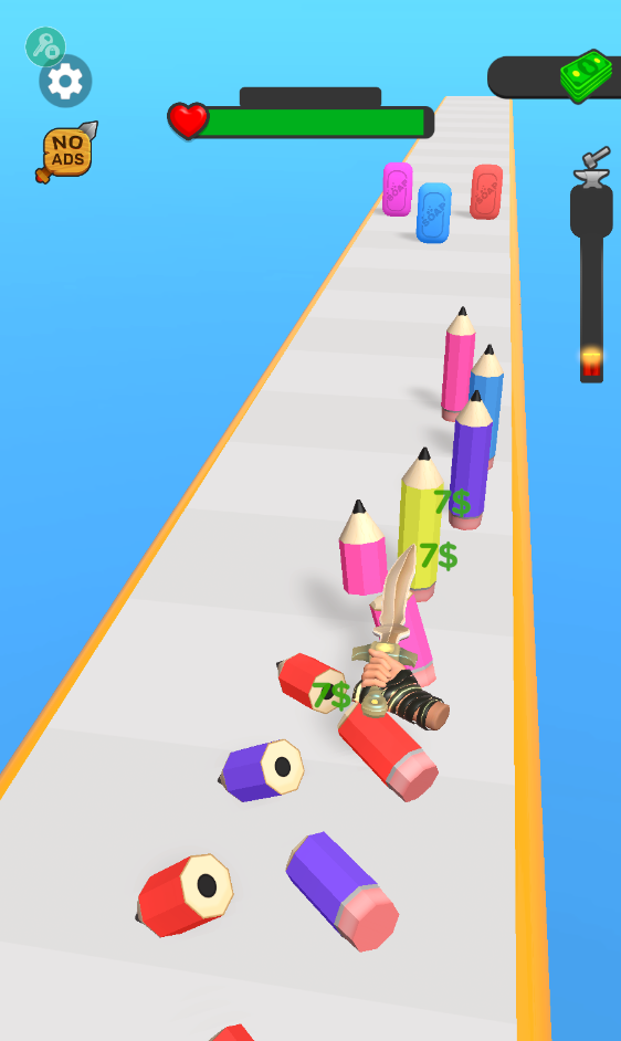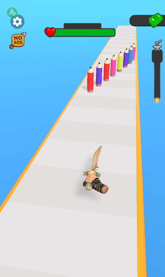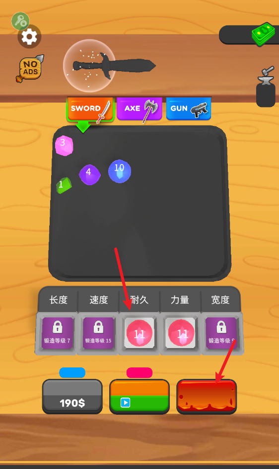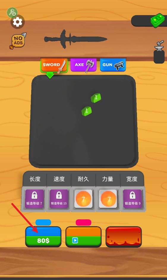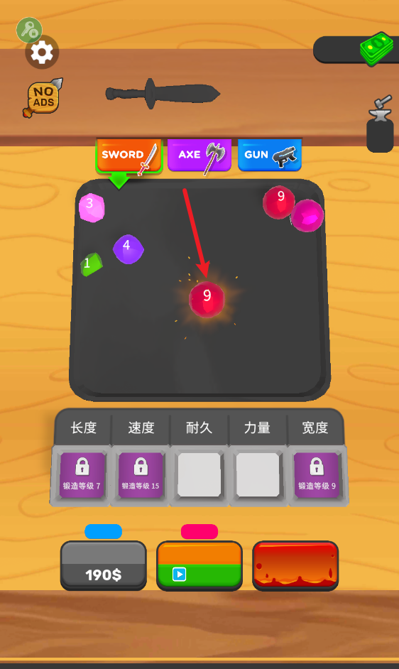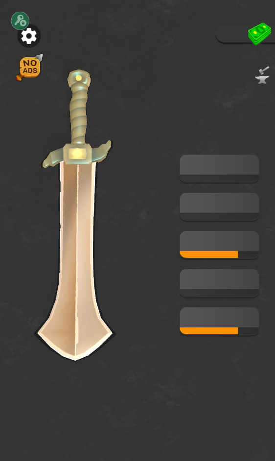 武器鑄造大師(Sword Melter),這是一款趣味十足的休閑闖關游戲。游戲圍繞武器鑄造展開,玩家可通過合成各類高階珍稀材料,打造出不同的終極武器,并借助這些武器挑戰關卡,跨越重重障礙直至終點!在游戲過程中,玩家需要持續收集更強大的材料,通過熔煉材料來增強武器的威力,從而助力自己攻克更多關卡,解鎖斧子、槍等豐富多樣的武器類型,收獲更為精彩的闖關樂趣!