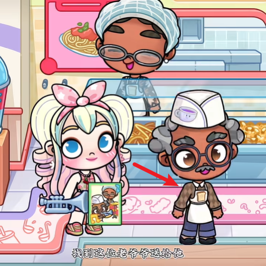 然后帶上樂器前往學校食堂,找到照片里的老爺爺,把樂器交給他。