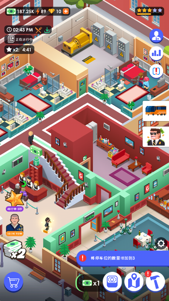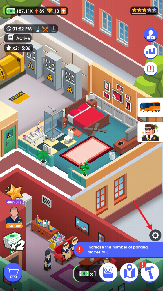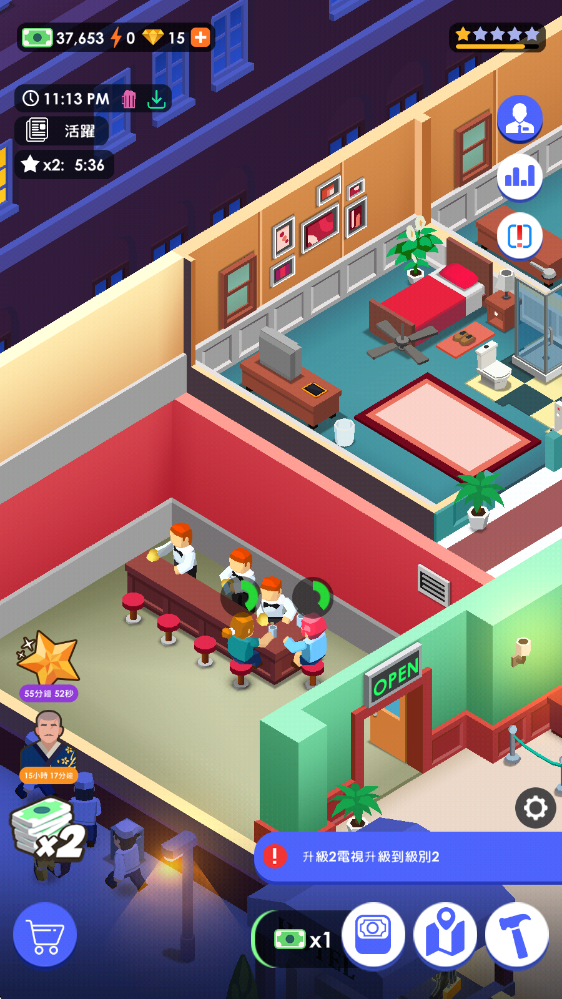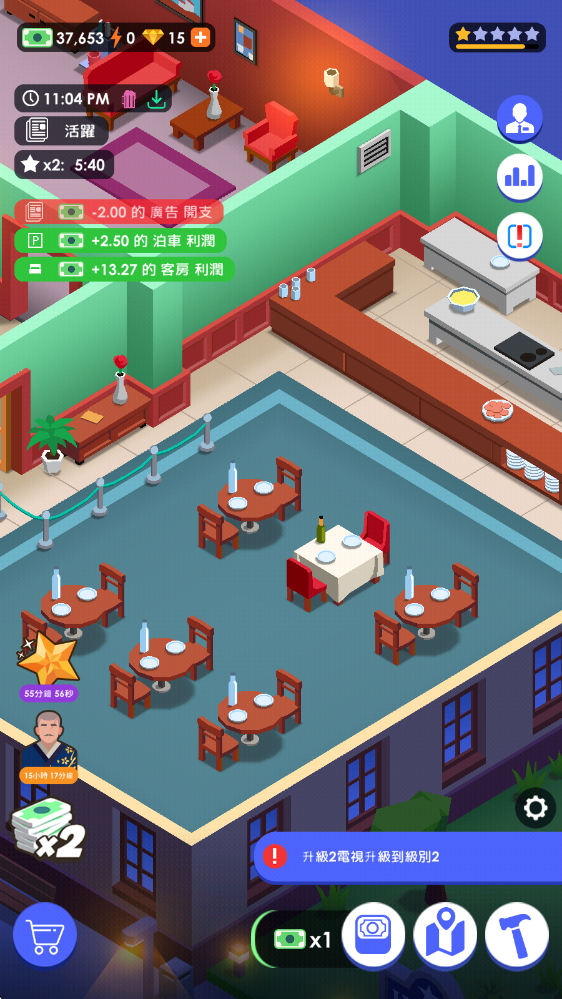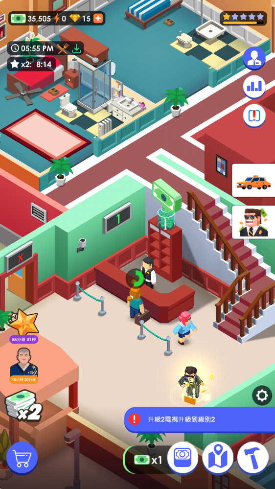 通過升級解鎖房間內的設施,可以提高整體的收入。