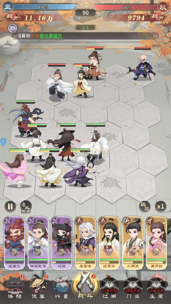 陣容英雄:宋大俠、小明王、毒老怪、逍遙和尚、龍大俠、周師妹、令狐師兄