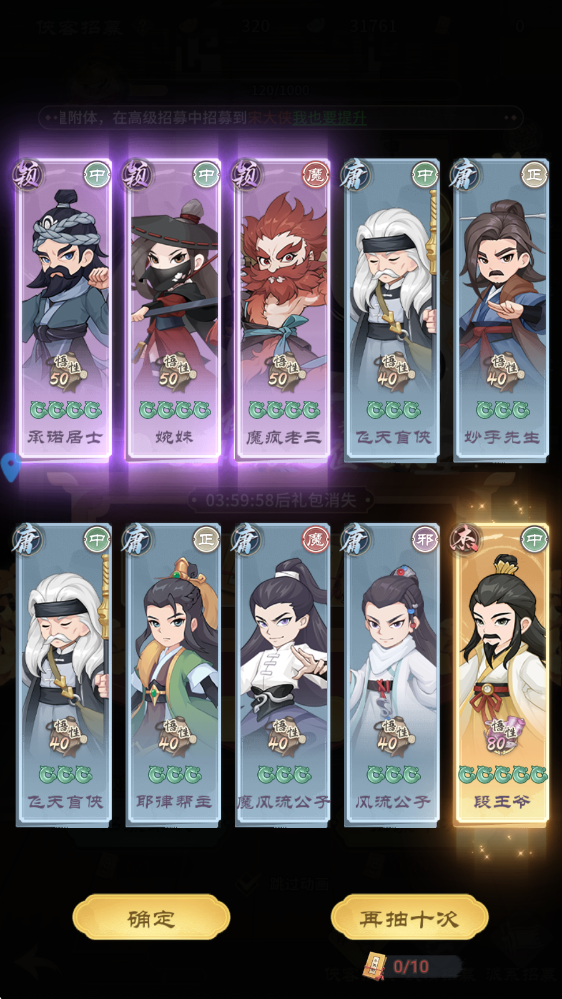 陣容英雄:神貪吃老丐、魔禪師機(jī)、神段公子、魔令狐師兄、神龍女俠、龍女俠、魔小明王