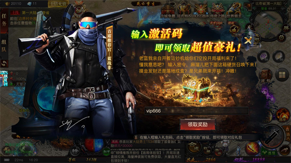 使用方法:進入游戲后,點擊左上方的齒輪圖標,接著點擊激活碼兌換中的“前往比奇”按鈕,之后在兌換輸入框內填寫禮包碼,即可領取對應的獎勵。