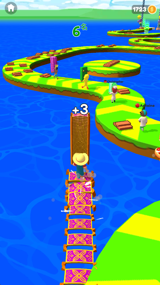 這是一款玩法相當(dāng)獨特的跑酷游戲,玩家需要收集更多木板為自己鋪設(shè)前進(jìn)的路徑,借助捷徑快速到達(dá)終點,從而贏得更多獎勵。