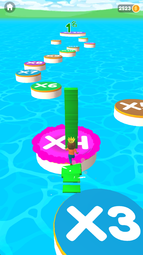 第一個沖過終點后,能借助剩下的木塊繼續(xù)前進(jìn),以此來決定最終獎勵的倍數(shù)。