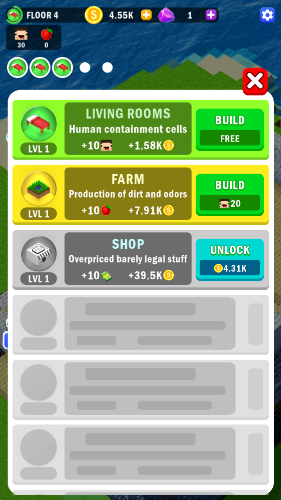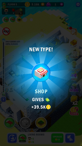 持續升級你的建筑設施,逐層搭建各類特色店鋪,最終打造出一座別具一格的摩天大樓。