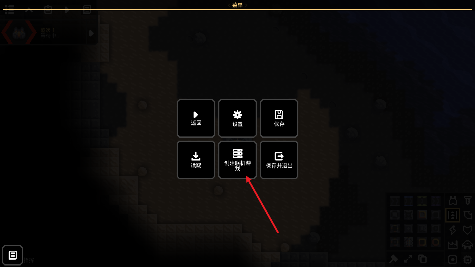 接下來我們就能進入游戲界面,點擊左上角的菜單按鈕,再點擊其中的創建聯機游戲選項。