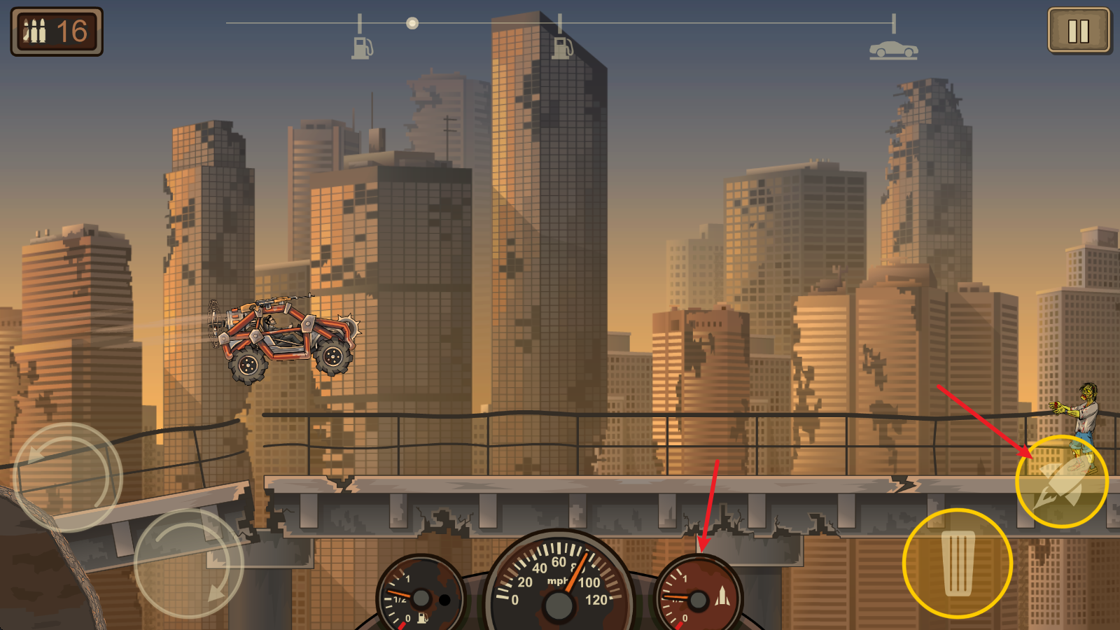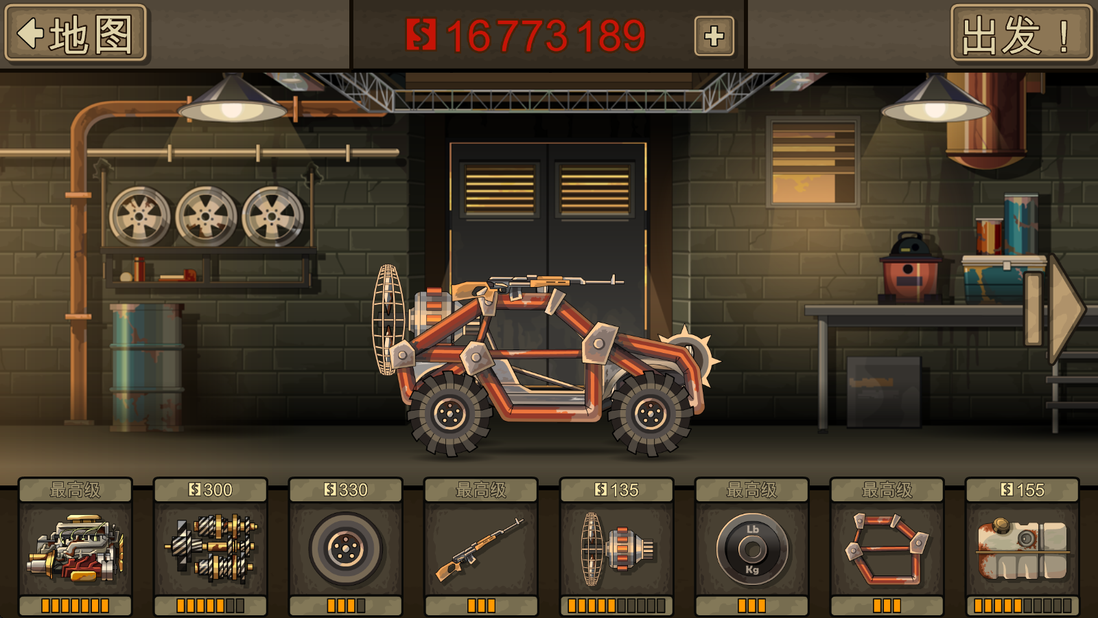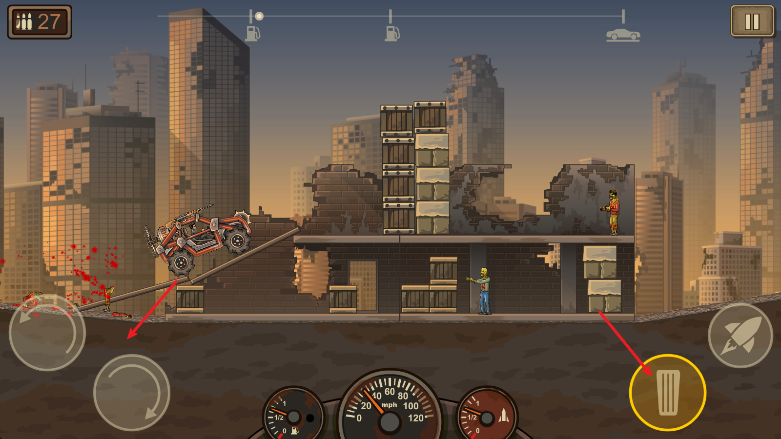 在前進(jìn)的路上,你會(huì)碰到許多擋道的僵尸,既可以給戰(zhàn)車裝上武器來攻擊它們,也能用最直接的沖撞把它們解決掉。
