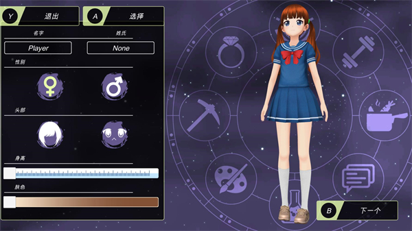 選好難度后就能創建自己的角色了,你可以挑選不同的發型和膚色。