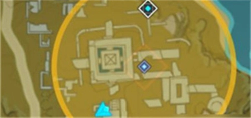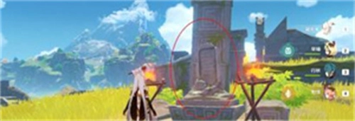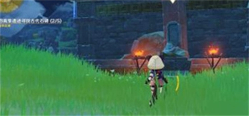 玩家需尋得5塊古代石碑,方可完成任務,第一塊石碑位于兩盞火炬之間,如圖所示。