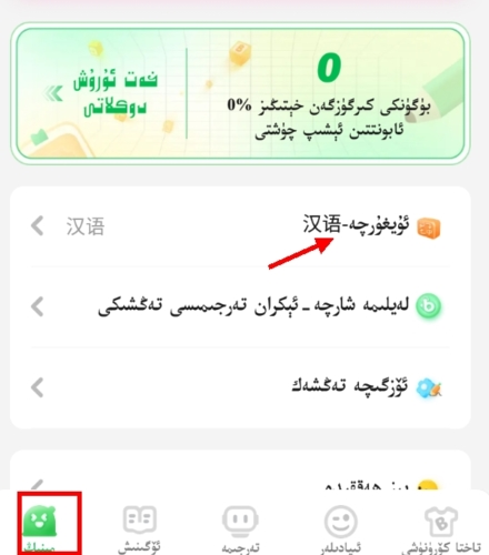 當處于維語模式時,再次點擊就可以切換成漢語界面。