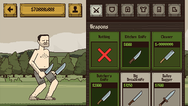 只要點擊下方的“Fight”按鈕,即可開啟闖關之旅。最上方的選項依次為訓練場、武器和人物。
