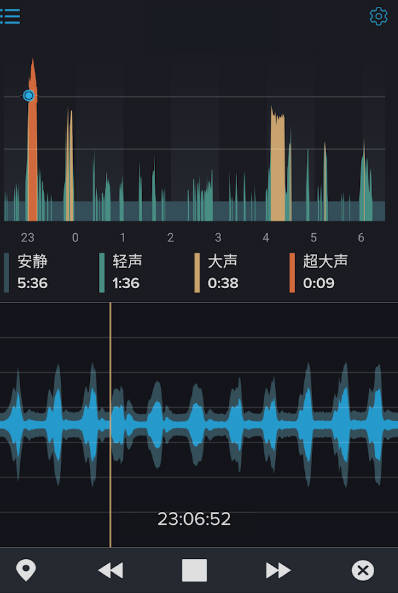 進入結果頁面后,就能查看你記錄的所有時間段鼾聲的頻率情況。