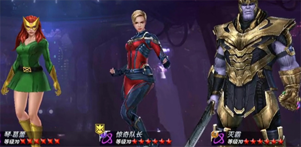 第一套陣容:驚奇隊長+滅霸+琴葛蕾。