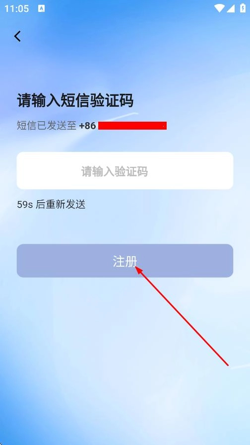 在短信驗證碼輸入頁面,輸入你收到的驗證碼,接著點擊注冊按鈕,這樣就能完成注冊流程了。