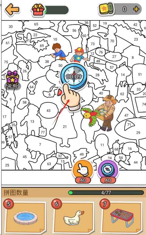可以合理運用一些道具。比如指南針道具的性價比就比提示手指高不少;要是手速足夠快的話,指南針甚至能在10秒內幫你搞定好幾個貼紙。