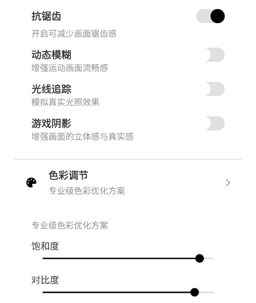 下面還有更加細(xì)節(jié)的畫質(zhì)設(shè)置,用戶可以根據(jù)自己的喜好開啟。