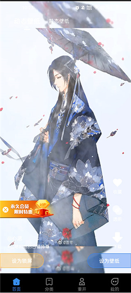 首先在本站安裝并打開軟件,來到軟件首頁,選擇你想要的壁紙,進行設置為鎖屏和壁紙;