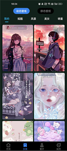 點擊分類,分類里面有簡約,炫酷、風景等多種壁紙可以選擇;