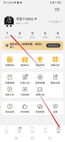 進入后,首先點擊右下角“我的”,再點擊頭像下方的“動態”;