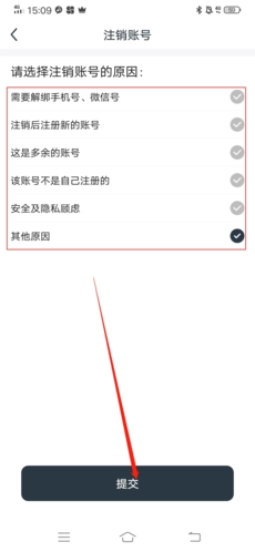 然后選擇一個注銷賬號的原因,點擊下方“提交”;