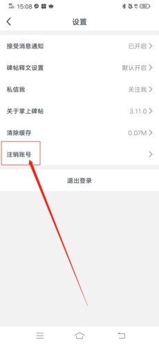 在設置頁面中,我們就能看到“注銷賬號”的選項了,點擊它;