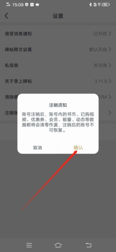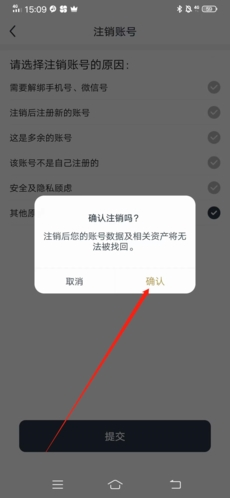 最后在彈出窗口中再次選擇“確認”,這樣就成功的將賬號注銷了。