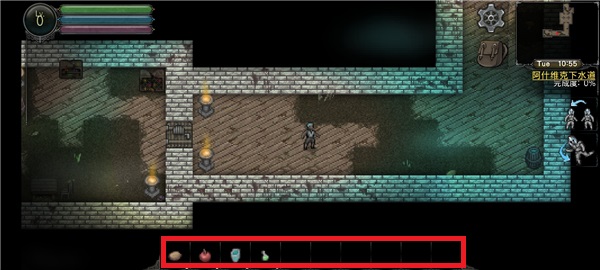 下方是物品欄,可存放食物與武器,不同的食物能恢復體力。