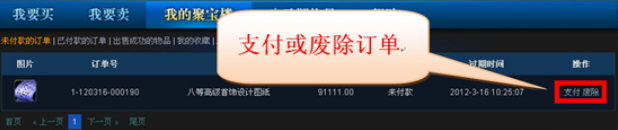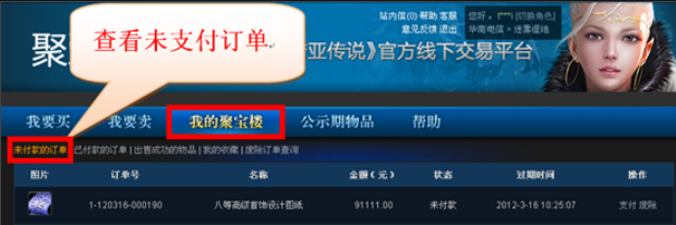 【未付款的訂單】 查看并進行支付。訂單超時失效以及廢除訂單次數超過一定次數后,將限制在聚寶樓購買的權限。